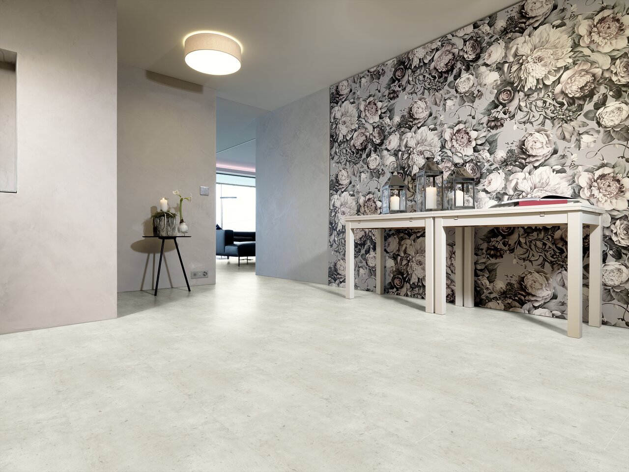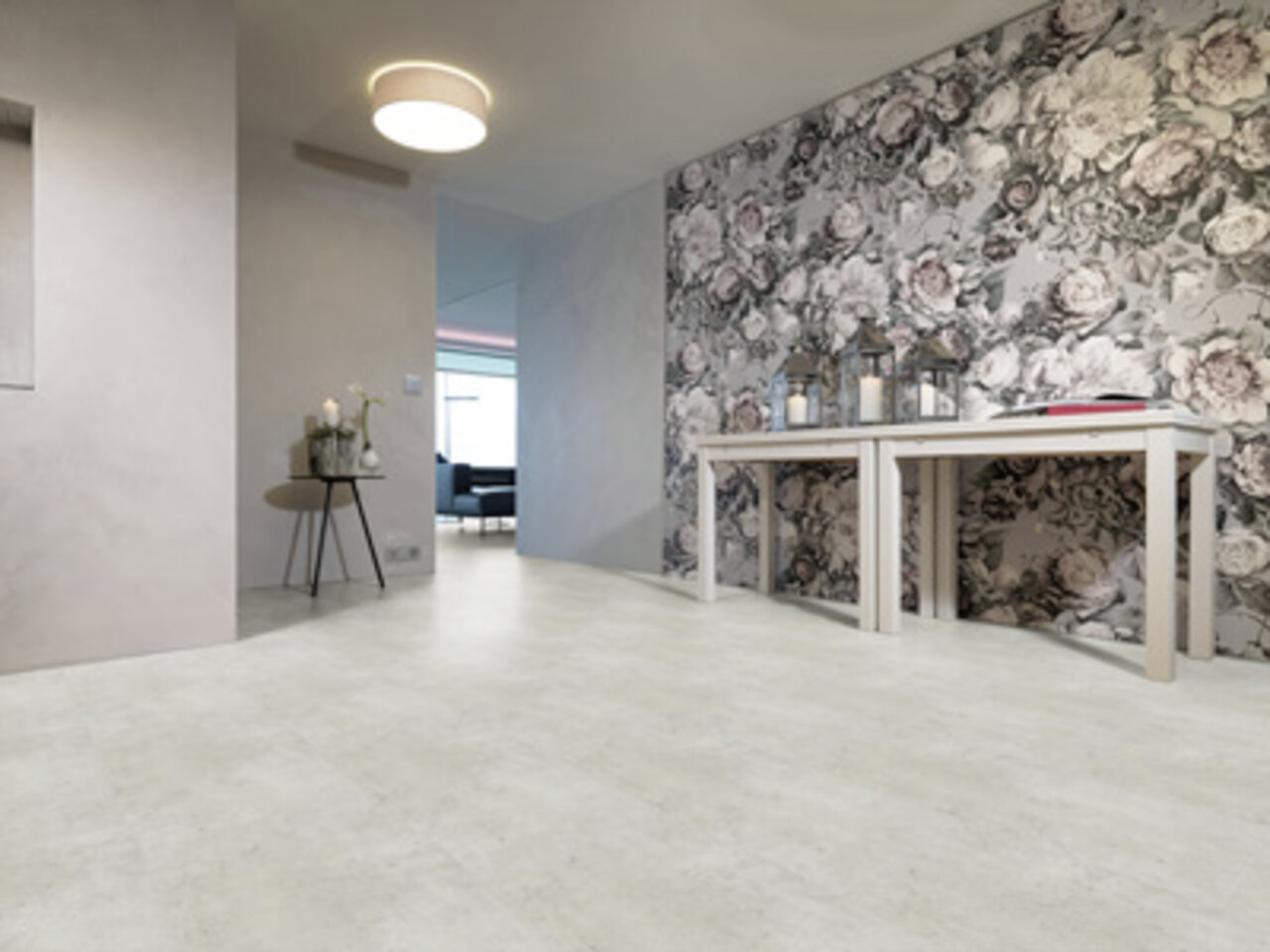 Designbelag in Steinoptik mit einer matten Oberfläche und einer erhöhten Rutschhemmstufe R10 sowie einer 4-seitigen Microfase zur vollflächigen Verklebung. Dieser Designbelag ist in 5 verschiedenen Stein Dekoren erhältlich.