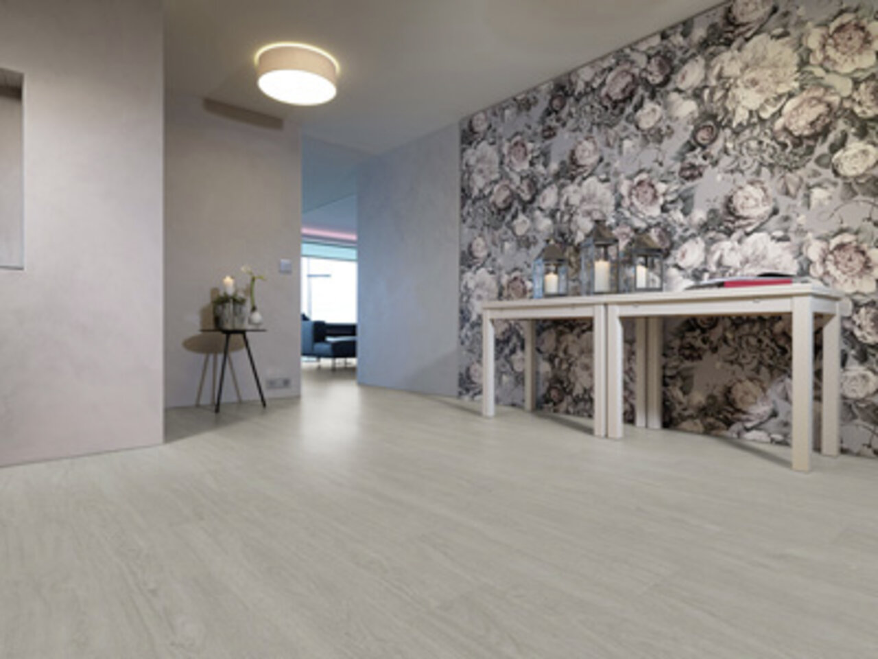 Designbelag in Holzoptik mit einer matten Oberfläche und einer erhöhten Rutschhemmstufe R10 sowie einer 4-seitigen Microfase zur vollflächigen Verklebung. Dieser Designbelag ist in 11 verschiedenen Eiche Dekoren erhältlich.