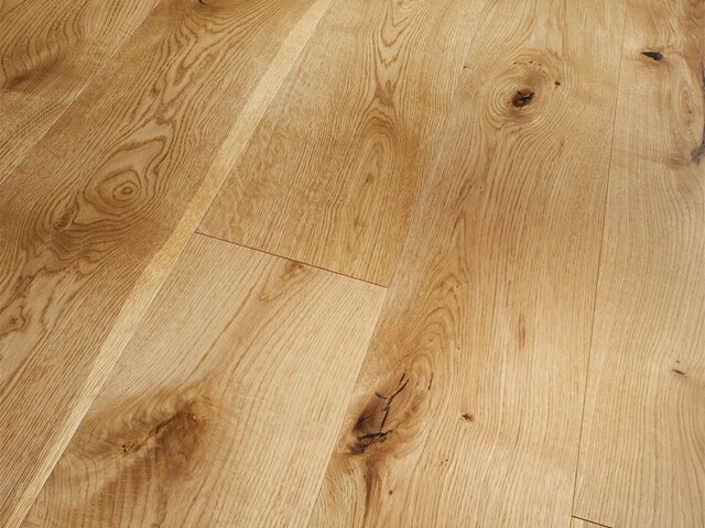 Attraktives Fertigparkett in Landhausdielen-Optik, mit einer Deckschicht aus Eichen Massivholz in lackversiegelt matt. Das Parkett verfügt über ein Automatic-Click System und lässt sich spielend leicht verlegen. Alltagstauglich und pflegeleicht bietet das überzeugende Naturprodukt vielfältige Gestaltungsspielräume. Diese Dielen verfügen über eine umlaufende Minifase, die die Optik der verlegten Dielen dezent unterbricht und die typische Parkettoptik unterstreicht. Die Sortierung Rustikal wirkt wegen ihrer astigen Optik, des ausgeprägten Farbspiels und der deutlichen Maserung besonders ursprünglich. Der Parkettboden ist sogar für eine Verlegung auf Fußbodenheizungen geeignet.
